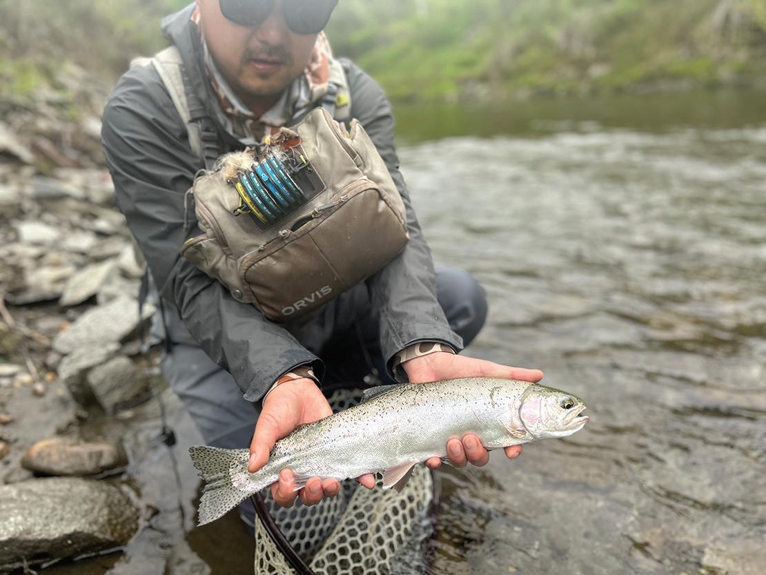 short trail to the actual ice caves. The more seasoned folks, including me only went into the cave about 50 feet. The graduate went a little further into the cave but even he didn’t go that far. On the way over to the Ice Caves, Grandpa caught a nice 14-inch brook trout. After supper, we caught nine brookies - the largest being 15 inches.