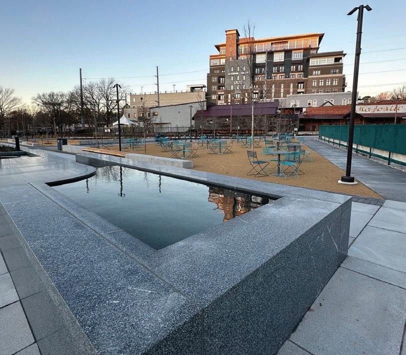 The City of Fayetteville celebrated the milestone with an opening ceremony on Dec. 30, 2024, where residents explored the newly completed plaza and enjoyed its green spaces, seating areas, and a granite water feature that pumps natural spring water from beneath the ground.