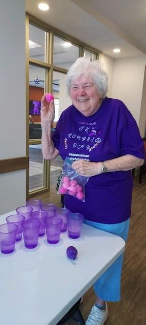 It all culminated on June 21st, the Longest Day! Residents and staff throughout the community came together for fun, games, and a big purple celebration party with music and dancing. It was truly a sight to see walking into the room filled with residents, staff, and families dressed in their purple attire enjoying the music of the DJ and the company of good friends!