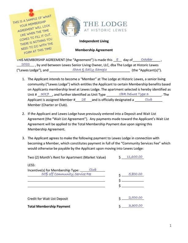As an independent living depositor at Lewes Lodge, you are about to embark on an amazing journey, should you choose to accept the offer to become a member at our incredible community!