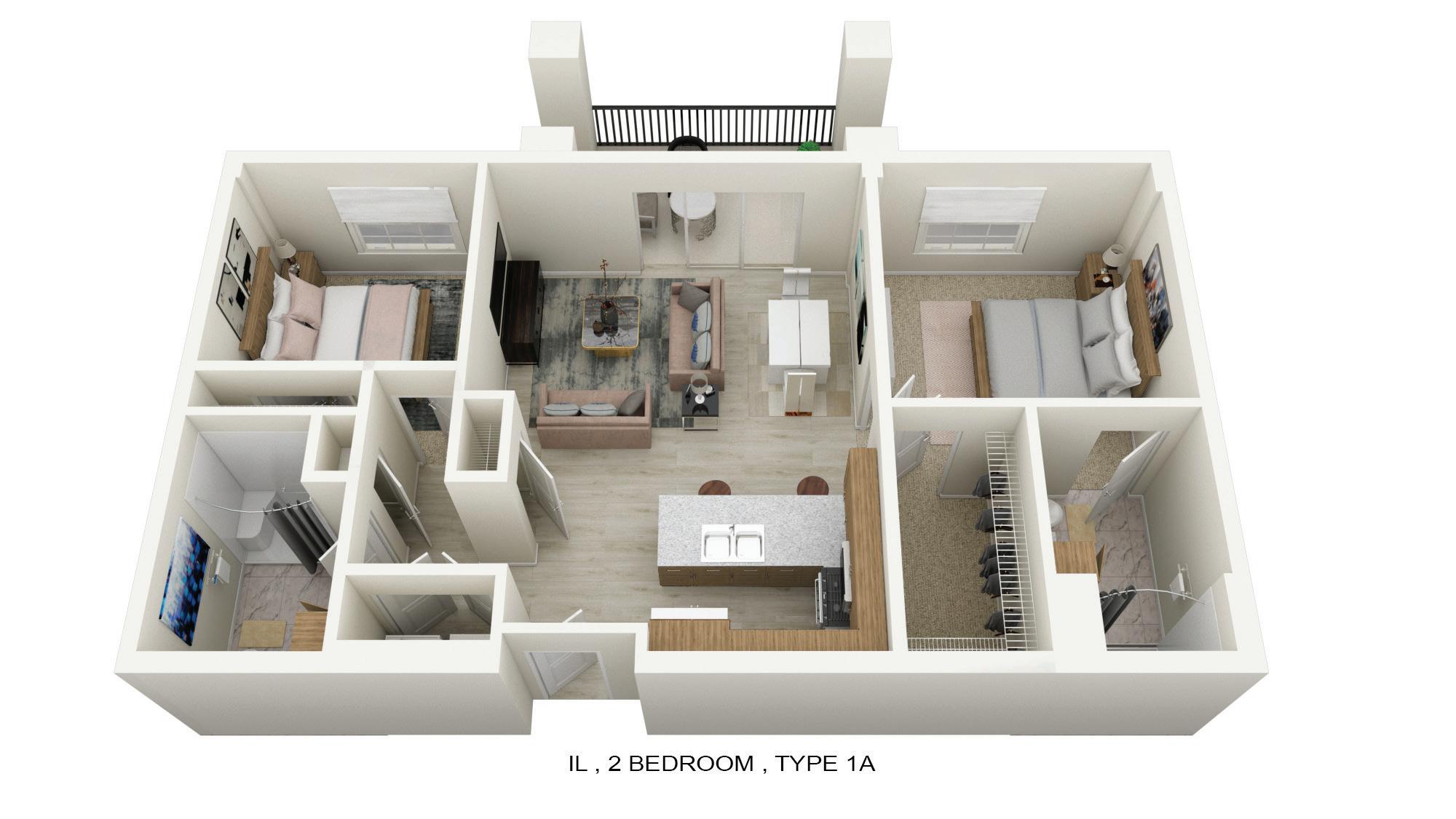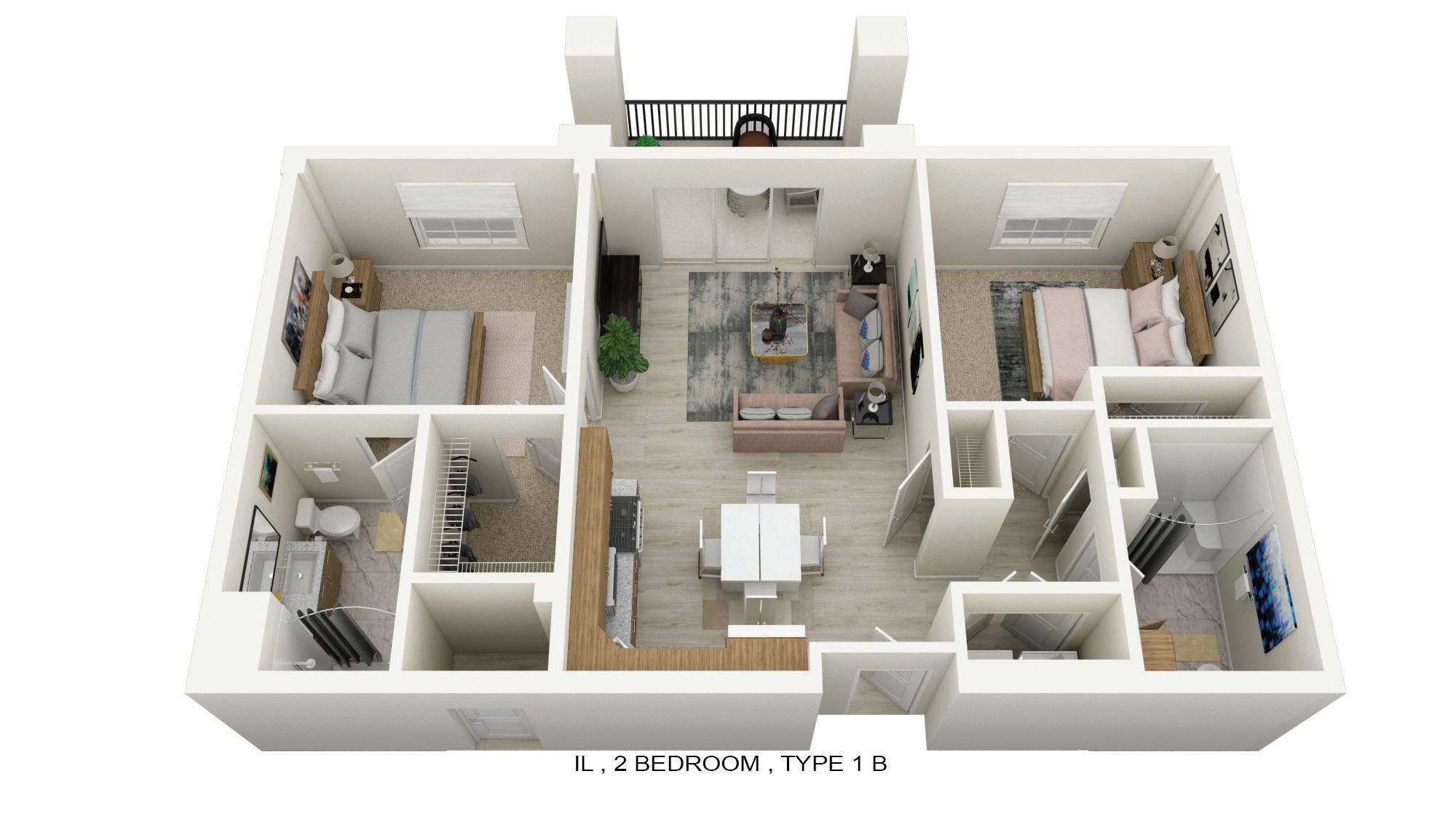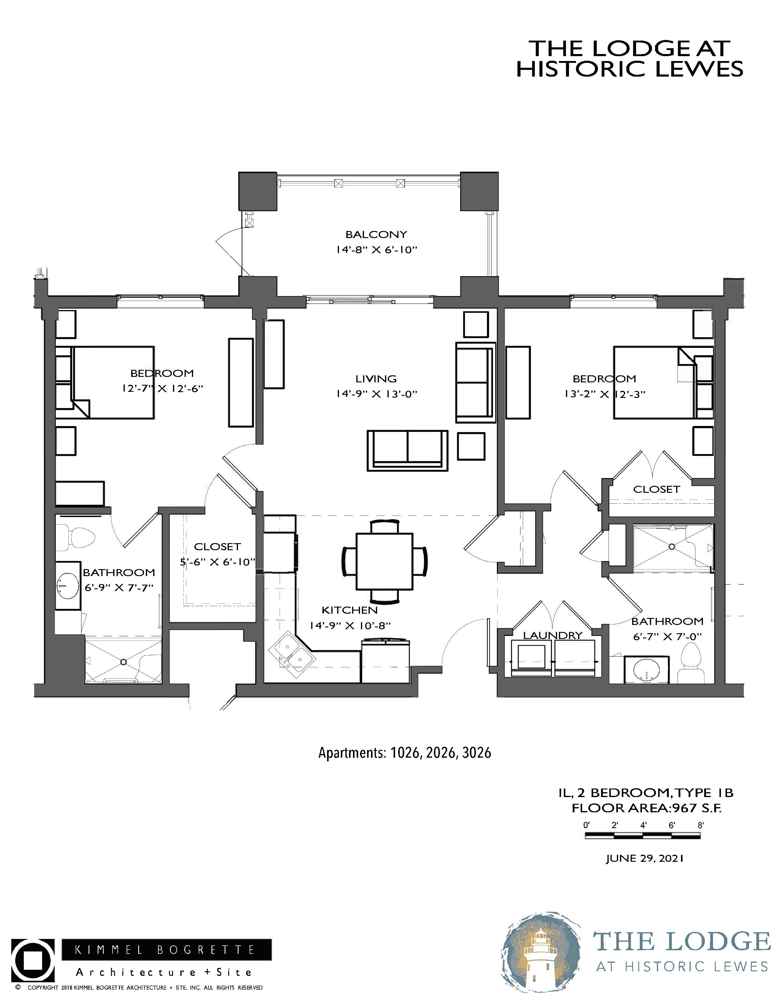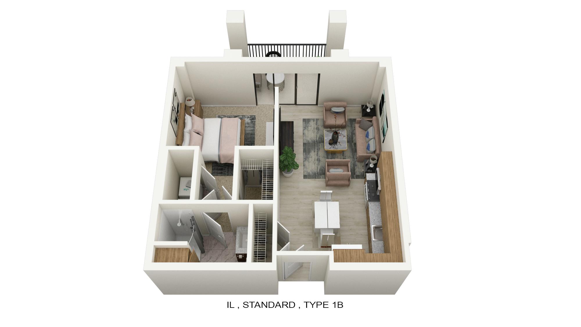 INDEPENDENT LIVING 2 BEDROOM TYPE 1B 967 ft²
