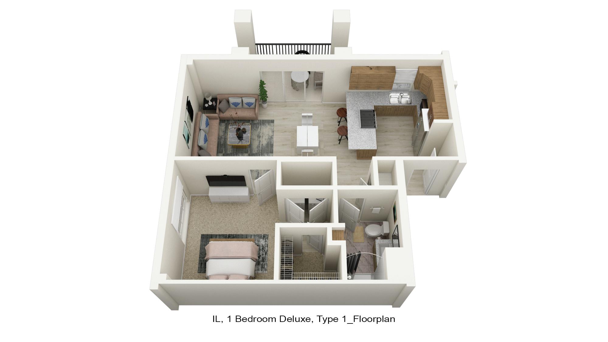 INDEPENDENT LIVING 1 BEDROOM D ELUXE TYPE 5 FORMERLY: 1 BEDROOM - TYPE 2 660 ft² Apartments: 2012, 2013