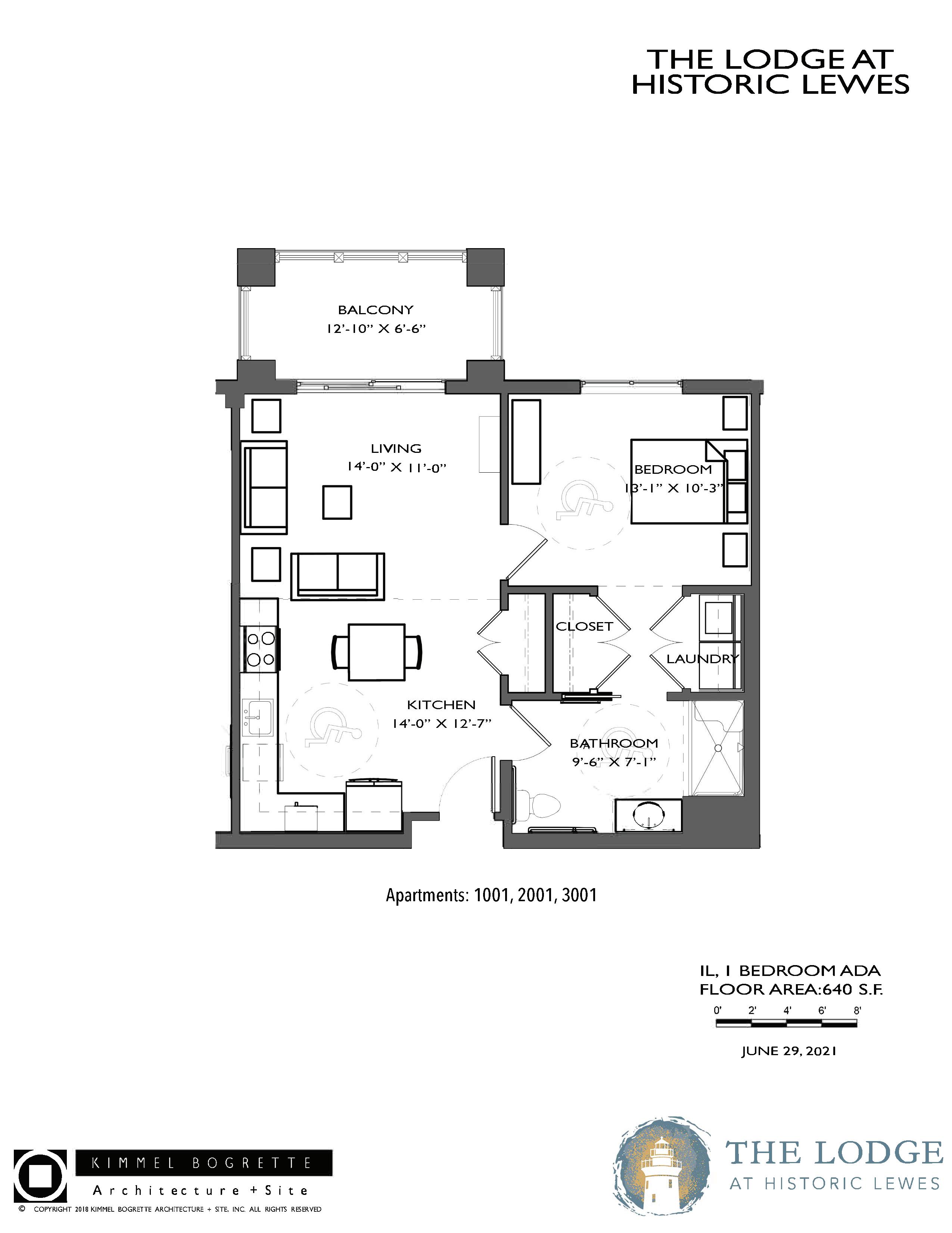 INDEPENDENT LIVING 1 BEDROOM TYPE ADA 640 ft² 1008 Kings Hwy POB 790 | Lewes, DE 19958 302-703-1901 | leweslodge.com Rev. 09.2022 Apartments: 1001, 2001, 3001