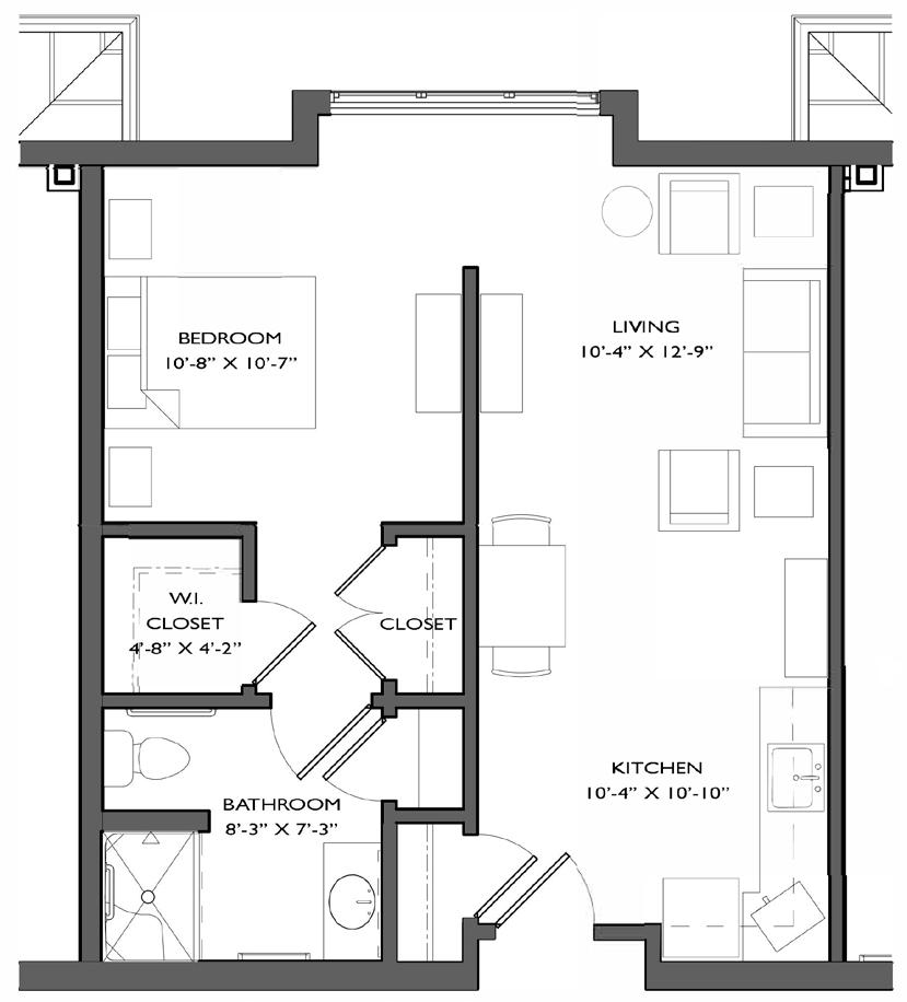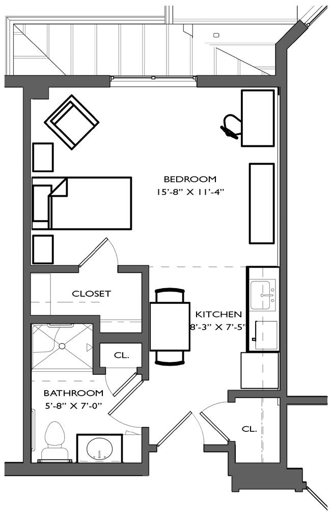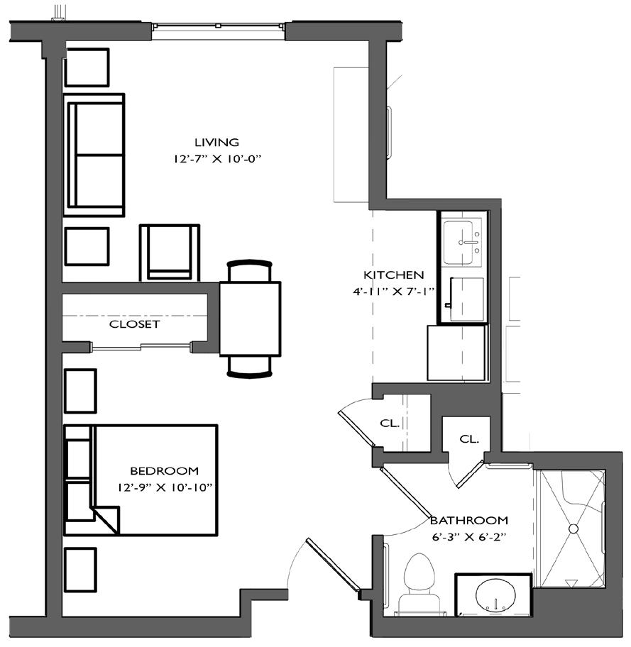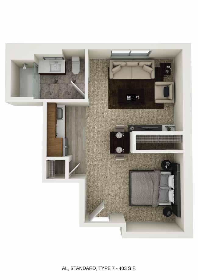 ASSISTED LIVING Standard Type 7 – 450ft² Apartments: 234, 235, 334, 335
