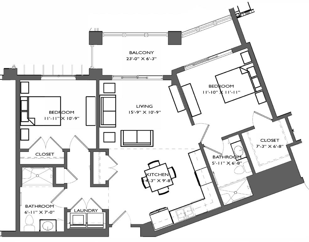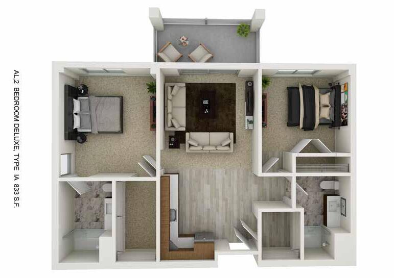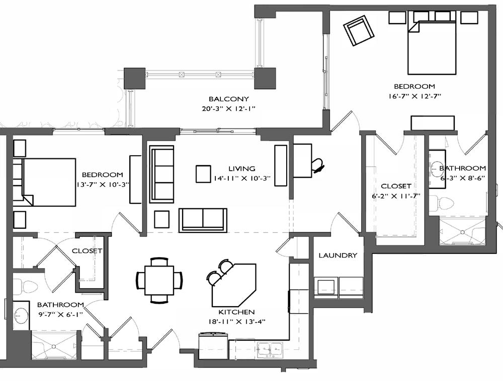 ASSISTED LIVING Two Bedroom Deluxe Type 1 – 1000ft² Apartments: 212, 312