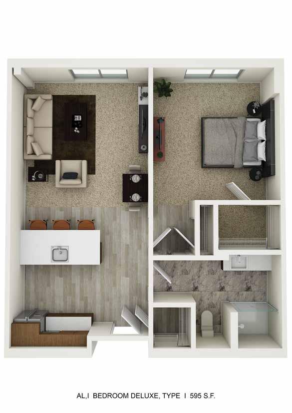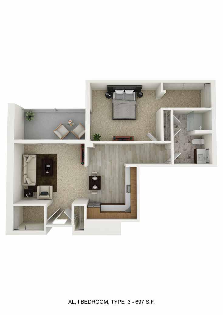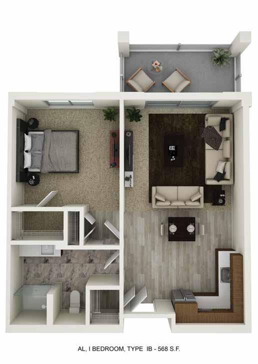 ASSISTED LIVING One Bedroom Deluxe Type 4B – 800ft² Apartments: 319, 323