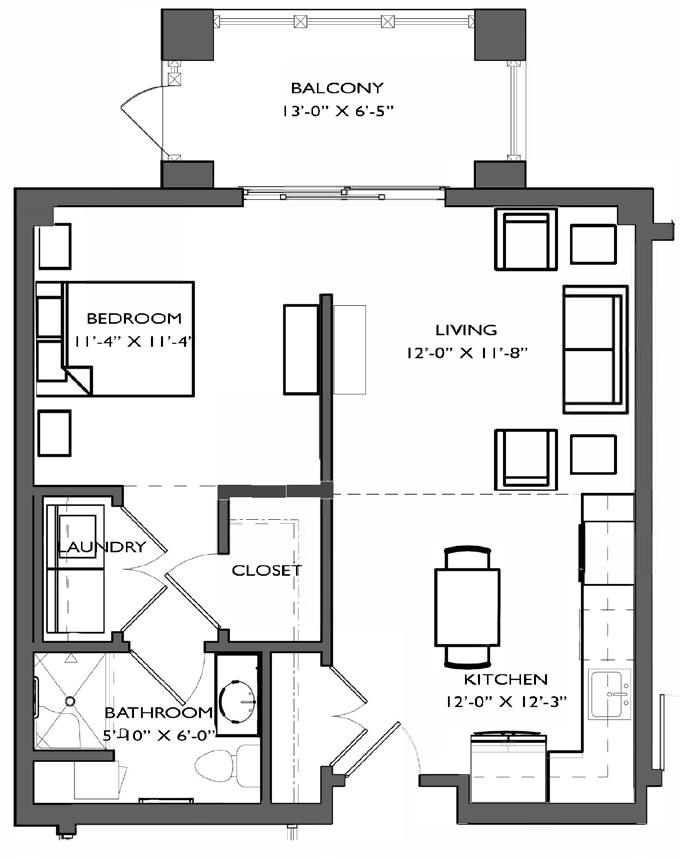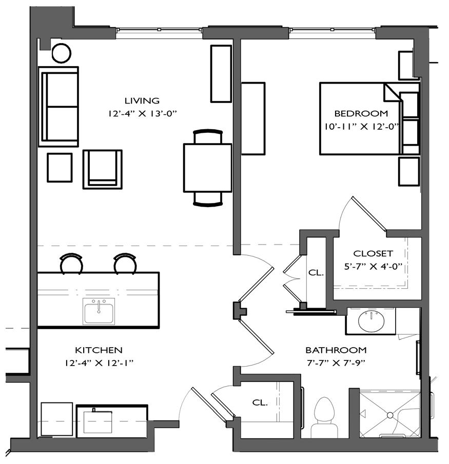 INDEPENDENT LIVING One Bedroom ADA – 640ft² Apartments: 1001, 2001, 3001