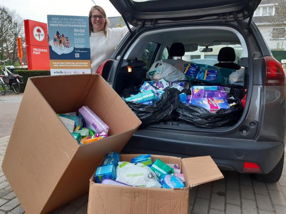 We zamelden (en zamelen nog steeds) samen met Rebelle menstruatiemateriaal in voor dames die hier nood aan hebben