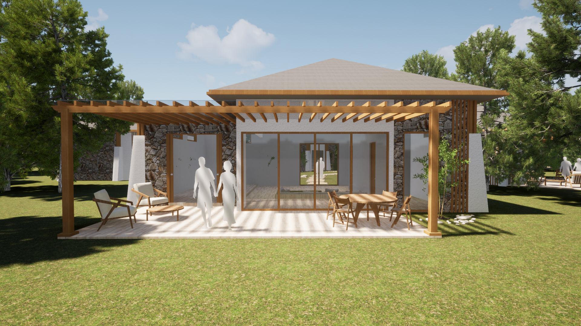 El area de estar en la pérgola permite apreciar las vistas en el exterior.