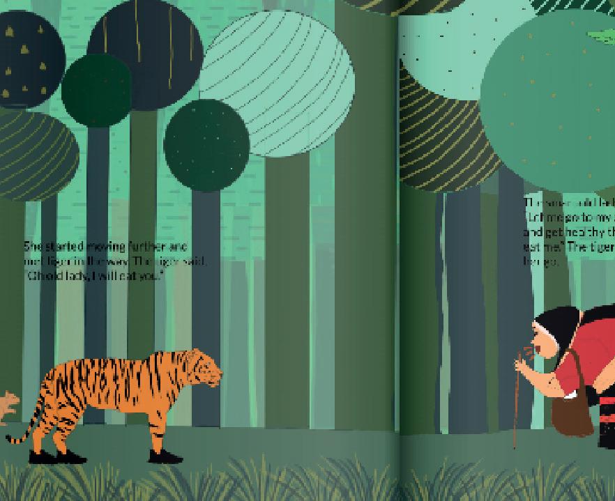 ‘Connection of Stories’- through threads and dots details in about the crafts and narratives along with enlightening about my theme of connection in my work. ‘The Rolling Pumpkin’- is an illustrated storybook for children connects my memories to the field visit to Vastadi, postcards connecting the journey to kutch and establishing aconnection of threads, and ‘Jodan-a connection of dots’- a game that connects back to the Tangaliya craft in Vastadi is about the motifs of the craft.