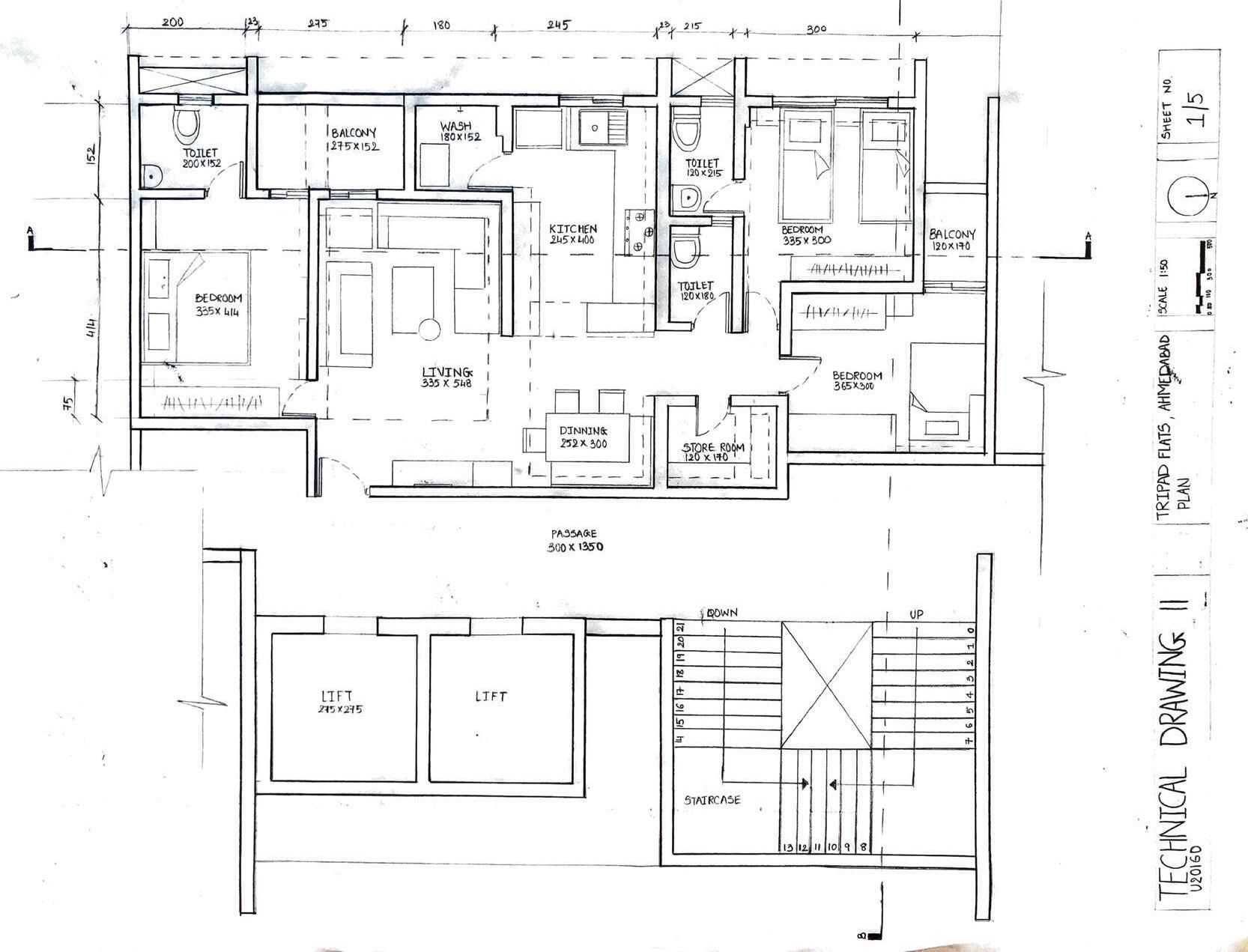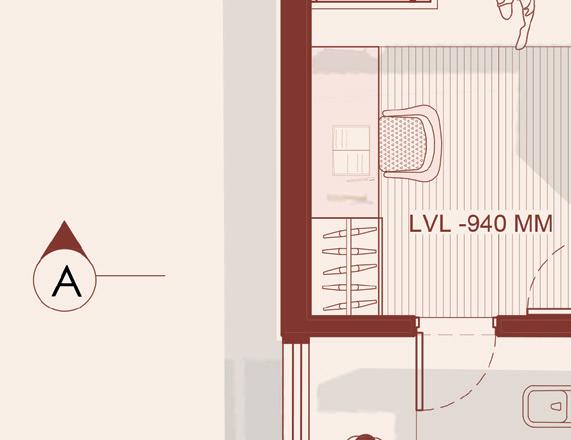 FIRST MEZZANINE LVL DN DN A A' N W22FD010 - STAIRS - AN ELEMENT OF DESIGN STATEMENT WINTER SCHOOL, 2022 SITE: CHENNAI CLIENT: VRUSHALI KAMDAR PROJECT:THE GULLY HOME DATE: 23/12/2022 SCALE: 1:100 DRAWING NO: 2 DRAWING NAME PLAN DRAWN BY: VRUSHALI KAMDAR CODE NO: UIR20160