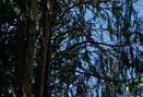 Drie donzige bosuilskuikens loeren in de schemer nieuwsgierig vanaf een tak naar mij. JOSÉ