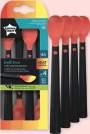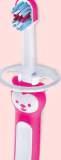 • 6 m+, kratek in kompakten ročaj, majhna okrogla glava in mehke ščetine, varnostni ščit drži ščetko na varni razdaliji, da ne zaide pregloboko v usta, več barv