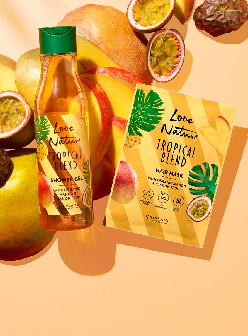 Love Nature Tropical Blend gel za prhanje z mangom in pasijonko iz biološke pridelave 250 ml.