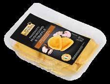 Sveže polnjene jajčne testenine s sirom burrata in pečenim paradižnikom ali z gobami in okusom črnih tartufov ali testenine s sirom in dimljenim lososom. Priprava 3 minute, primerne tudi kot samostojna jed. Poreklo sestavin Italija.