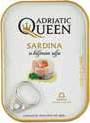 Sardine Adriatic queen v rastlinskem olju, v rastlinskem olju s feferonom ali v oljčnem olju, 105 g ali Sardelina pašteta Adriatic queen 95 g, redna cena: od 1,69 naprej, PC30: od 1,39 naprej