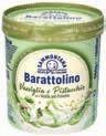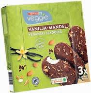 je slasten sladoled, pripravljen na osnovi riževega napitka, z okusom vanilije in oblit s čokolado ter posut s koščki mandljev.