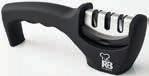 • omogoča brušenje v 3 korakih: v prvi reži je diamantni kamen, ki odpravi morebitne poškodbe rezila, v drugi reži naostrimo rezilo s pomočjo volframovega jekla, v tretji pa je keramika za poliranje • mehek, ergonomsko oblikovan ročaj omogoča dober oprijem in ne drsi