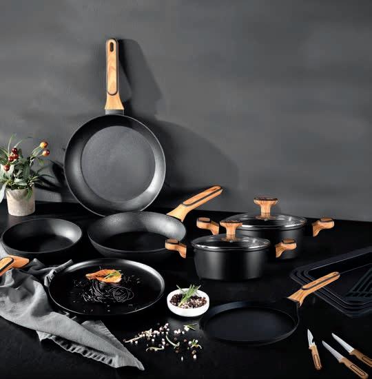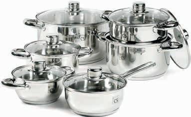 • iz kvalitetnega nerjavečega jekla, kombinacija visoki sijaj / mat • vsebuje kozice premera cca 14 cm, 16 cm, 18 cm, 20 cm in 24 cm ter gozico z dolgim ročajem • priložene steklene pokrovke