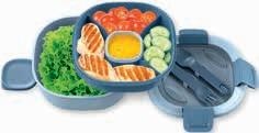 • pribor za večkratno uporabo, posodica s pregrado, 1 večja posoda in 1 manjša posoda za solatni preliv • velikost sestavljenega seta cca 19,5 x 19,5 x 9,6 cm