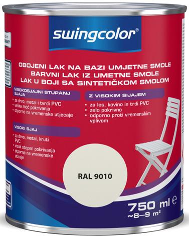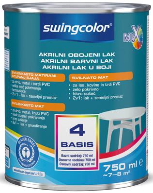 'Basis 1' ali 'Basis 4', snežno bela, mat, za notranjo in zunanjo uporabo, visoka odpornost proti vremenskim vplivom, dobro pokrivna, zelo trpežna
