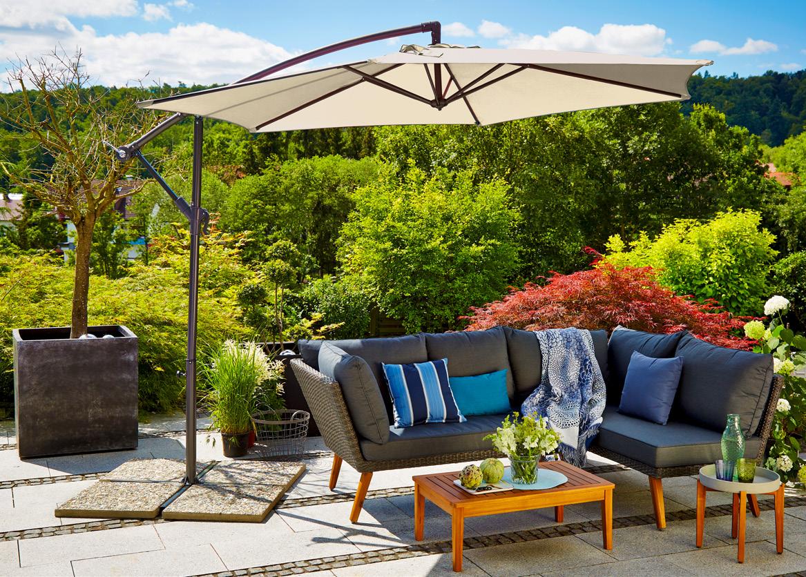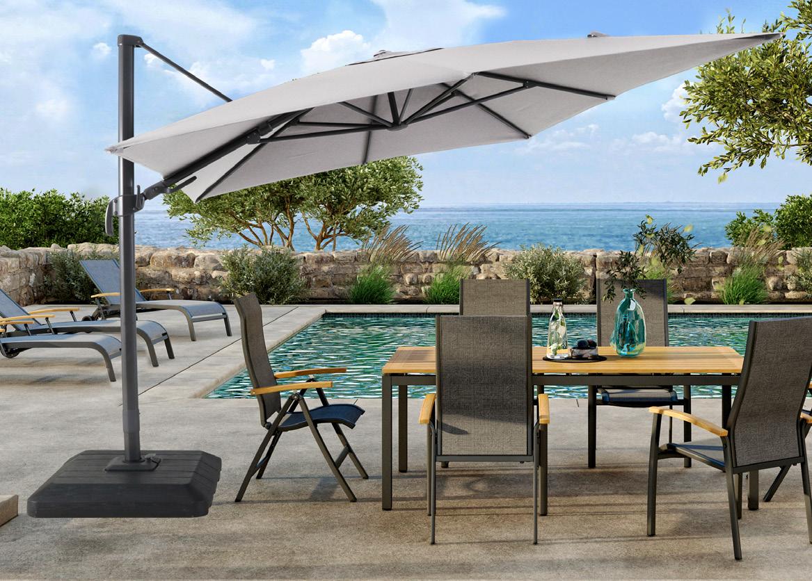 d 350 x š 300 cm, prašno barvano aluminijasto ogrodje, poliestrsko platno, vrtljiv za 360° in nagiben, antracit ali bež, vklj. stojalo 399,- npr. 27159716