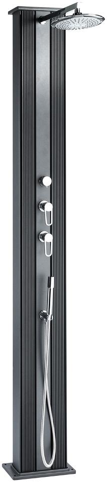 Solarni tuš 'Basic' v 220 cm, prostornina 20 l, nadglavna prha Ø 16 cm, regulacija temp. z enoročno mešalno ročko, kakovostna umetna masa, črn 20235305