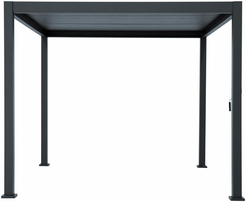Paviljon 'Palma' prašno barvano aluminijasto ogrodje, lamelna aluminijasta streha, odpiranje in zapiranje s pomočjo ročice, s sistemom za odvajanje vode, brez žleba, antracit