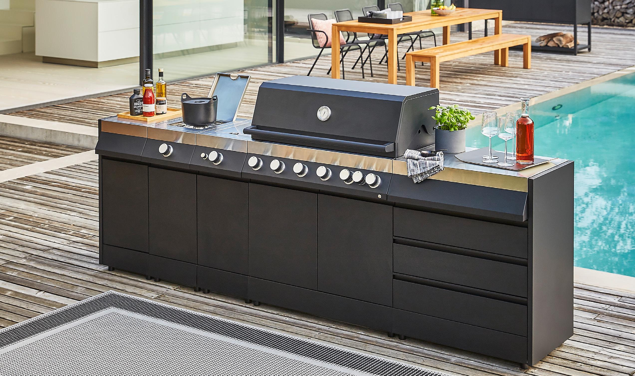 d 220 x š 100 x v 75 cm, prašno barvano aluminijasto ogrodje / FSC akacijev les, mat črna / natur rjava 579,- 31436836