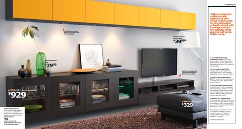 01 New BESTÅ TV storage combination $929 Foil fnish and tempered glass. RA. Max load 176 lbs. W165⅜×D15¾×H75⅝". Black-brown/ high-gloss yellow 590.358.42 Lighting is sold separately.