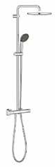 GROHE tuš set Vitalio Start 210 THM dish 9,5 (26814001) –nadglavna prha s krogličnim zglobom ±15°, dva vzorca pršenja (dež, curek), termostat s preusmeritvijo, 390 mm vrtljiva tuš ročka, GROHE EcoJoy, TurboStat, SpeedClean, primerno za pretočne grelnike od 18 kW/h.