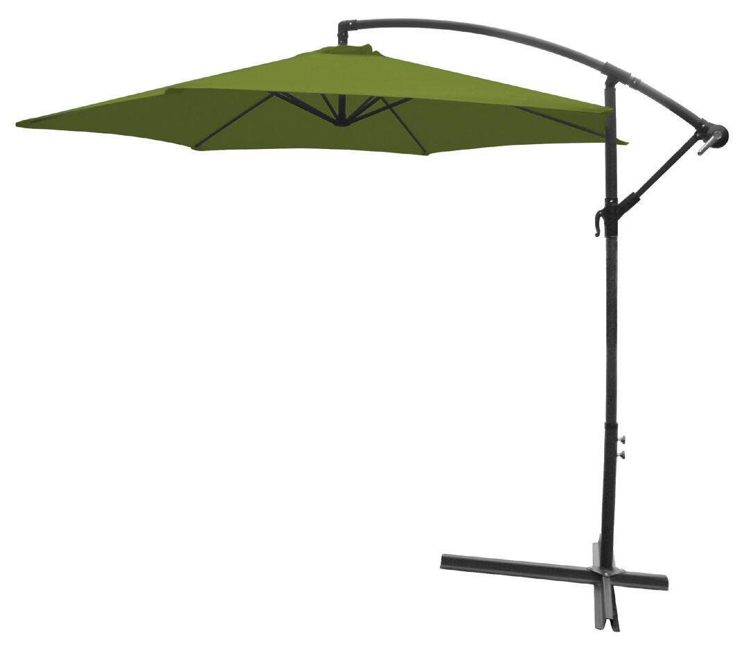 Mere: ø 300 cm, aluminijasto ogrodje antracit barve, z navojno ročico za odpiranje, z zračnikom in s kovinskim podstavkom, nosilec 48 mm, 8 reber, zelene barve.