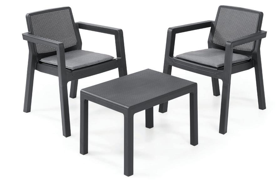 3-delna, mere stola (2x): 62/60/89 cm, visoko hrbtišče, miza: 59/59/43 cm, teža 13 kg.