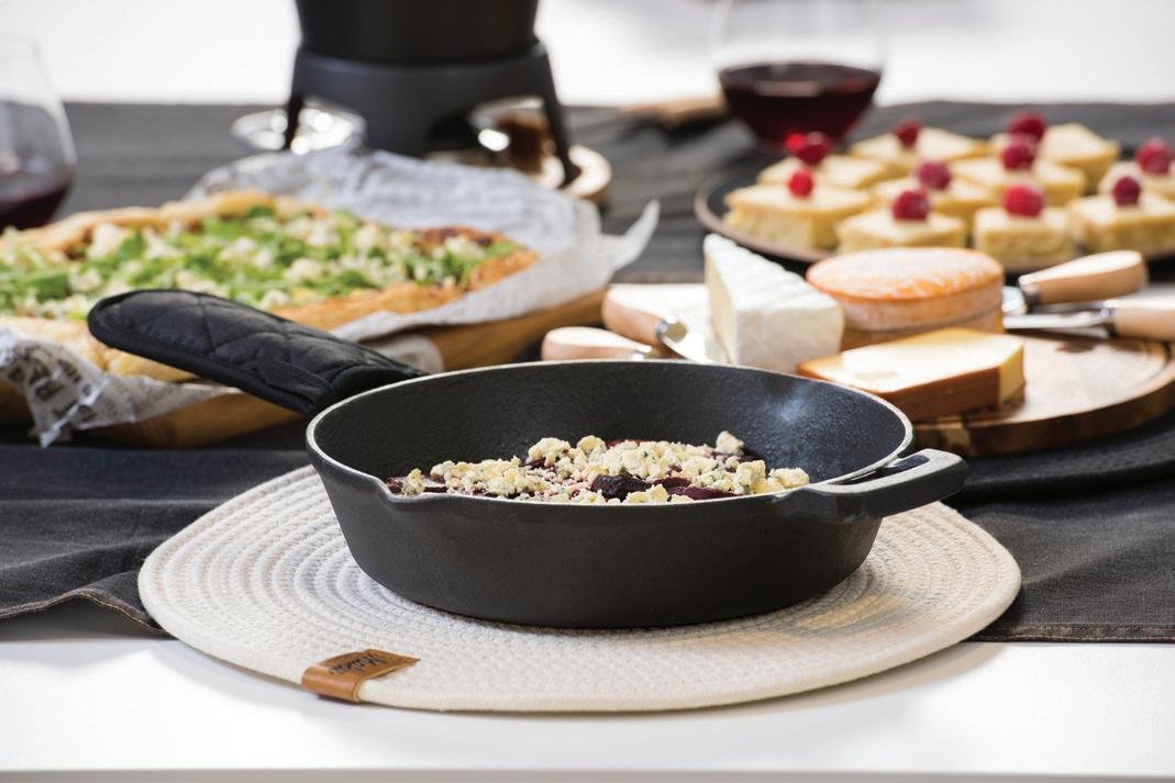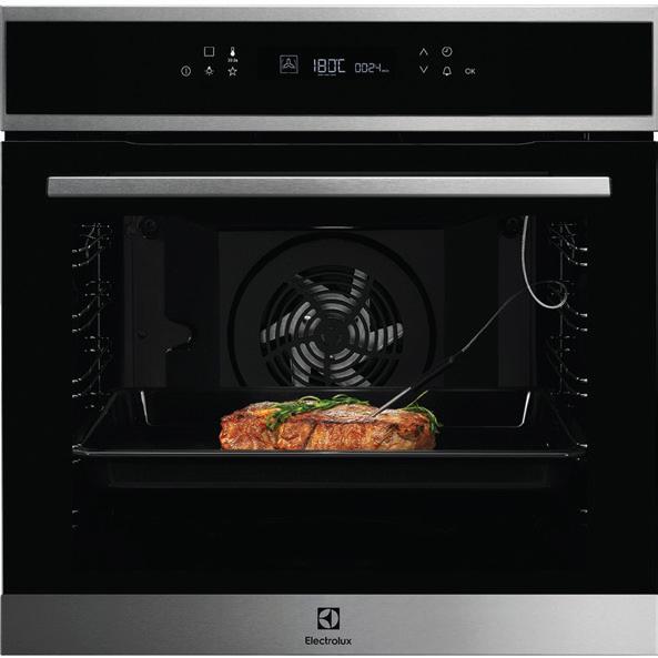 Mere (ø/v): 57/107 cm, posoda in pokrov sta prevlečena z emajlom odpornim na visoke temperature, termometer integriran v pokrov omogoča pečenje s kroženjem zraka.