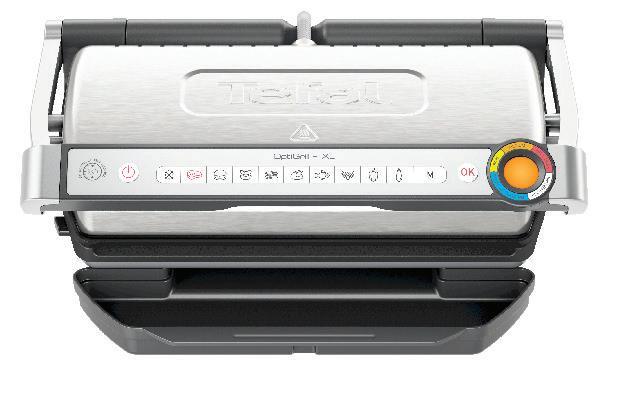GC728D10 • ODLIČEN ZA PEKO STEAK-ov • Moč 2000 W • 9 programov pečenja, od delno do skozi pečeno • Avtomatski senzor debeline • Odstranljive, neoprijemljive žarne plošče XL SVETLOBNI INDIKATOR PEČENJA, IDEALEN