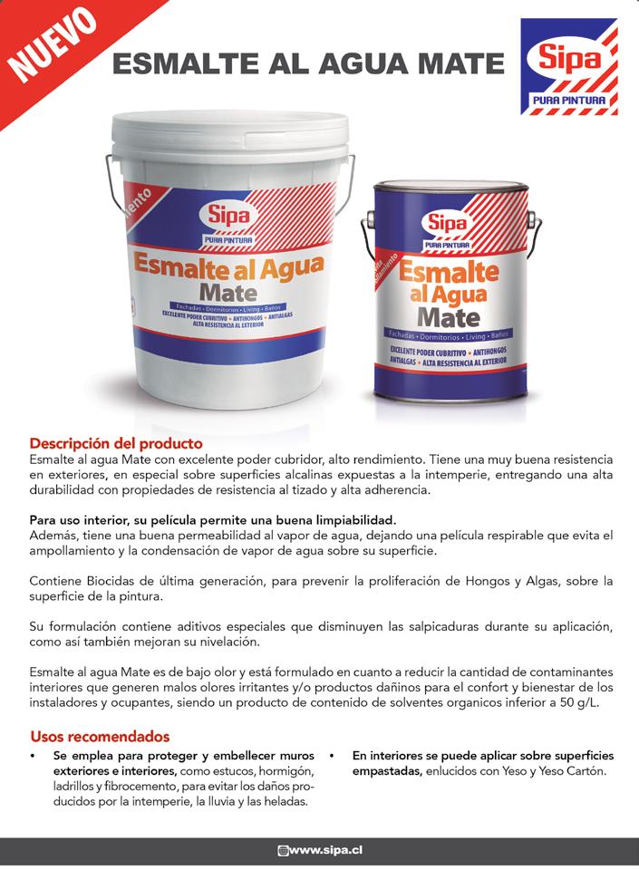 y cielos. Es por ello que los expertos recomiendan el Esmalte al Agua Satina do, que forma películas resistentes a la humedad, de brillo leve y terminación suave que permite limpiar y remover las manchas de forma más fácil.