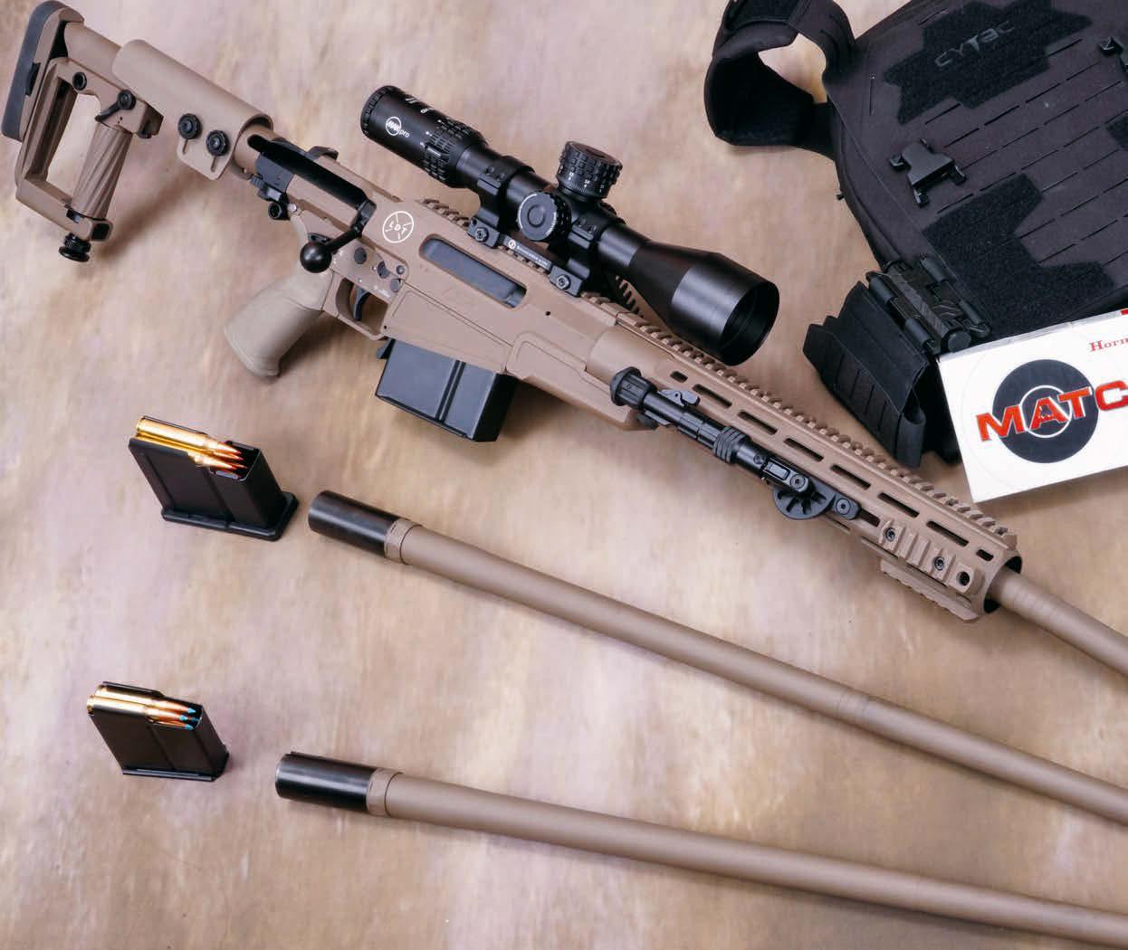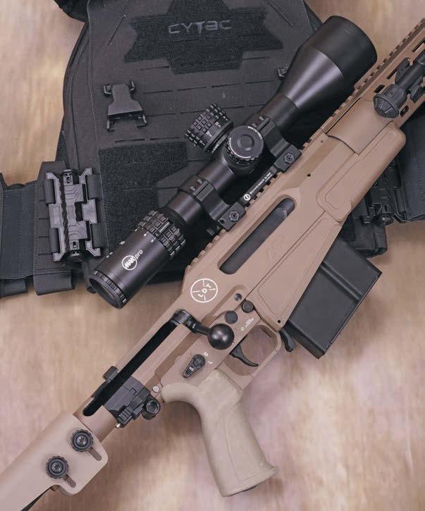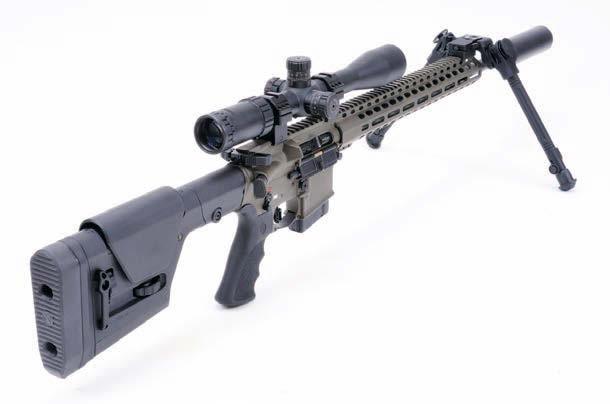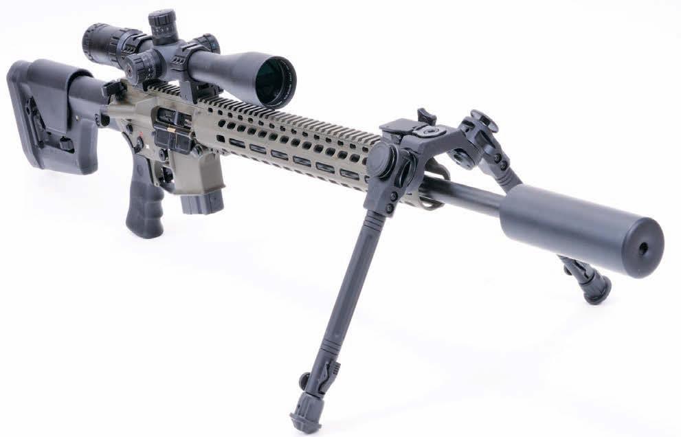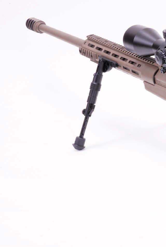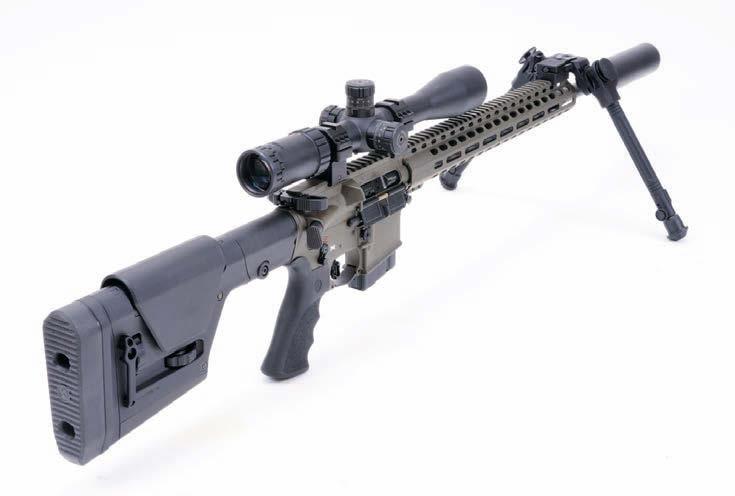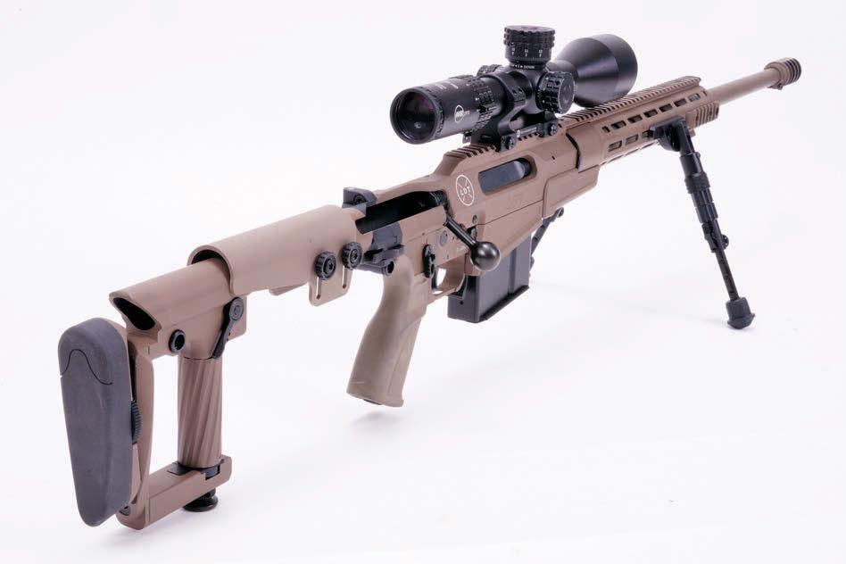 DStock Number (NSN) 1010-27-0672857 konnten wir übrigens persönlich erstmals auf der Enforce Tac 2019 in Augenschein nehmen (siehe caliber 5/2019). Das deutsche Großhandelsunternehmen Waffen Schumacher aus Krefeld vermarktet es unter dem Markennamen LDT, weil hierunter bereits Waffensysteme für artverwandte Einsatzzwecke wie das heute leider nicht mehr erhältliche, halbautomatische Präzisionsgewehr LDT HSG-1 im Stil eines HK PSG-1 auf technischer G3-Basis in .308 Winchester offeriert wurden (siehe caliber 4/2006). In einem einjährigen Entwicklungsprozess wurde das hier vor-