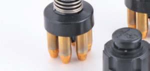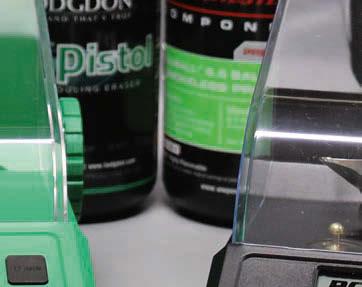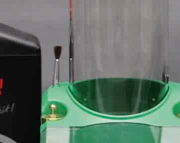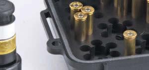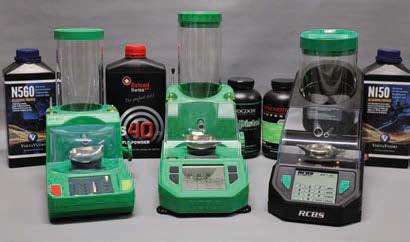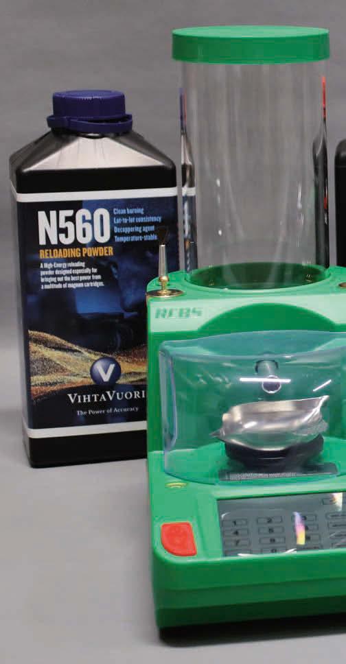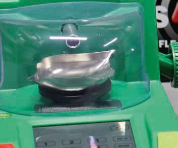 Elektronische Pulverfüllgeräte sind mit einer integrierten, digitalen Waage ausgerüstet. Man gibt den gewünschten Ausgabewert ein und das Gerät schüttet die Treibladungsmittelcharge aus dem Pulvervorratsbehälter aus. Je näher sich die Charge dem Sollwert nähert, desto langsamer wirft das Gerät das Pulver aus. Kurz vor dem Erreichen des Zielwertes schalten die Geräte um und trickeln die letzten Körnchen in die Waagschale. Diese komfortablen Geräte erleichtern die Arbeitsabläufe beim Wiederladen ungemein, benötigen aufgrund ihrer kompakten Bauweise wenig Platz und sind einfach zu bedienen. Grundsätzlich offerieren diese Geräte die Möglichkeit, manuell oder im Auto Modus zu arbeiten, wobei aus unserer Sicht aus Gründen der Ef zienz nur der automatische Modus Sinn macht. Man stellt das Gerät auf die gewünschte Charge ein, drückt Start, das Gerät wirft die Charge aus, wenn man die leere Waagschale wieder aufsetzt, nullt sich die Waage und es erfolgt automatisch die nächsten Chargenausschüttung. Aus diesem Grund gestaltet sich bei diesen Geräten die Arbeitsweise ein wenig anders: Üblicherweise befüllt man alle vorbereiteten Hülsen auf dem Ladebrett mit Pulver, um anschließend die Geschosse zu setzen. Nun werden jedoch die kalibrierten und mit Zündern bestückten Hülsen einzeln mit Treibladungsmitteln befüllt und in der Zeit, in dem das Gerät die nächste Pulvercharge ausschüttet, kann man das Geschoss setzen und die Endkontrolle an der Patrone ausführen. Generell gilt zu beachten, dass die Geräte emp ndlich auf Erschütterung und Zugluft reagieren. Daher empfehlen wir, sie auf einen