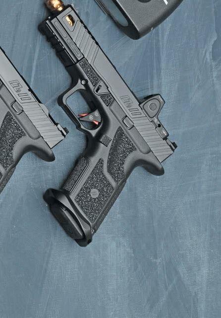 Doch von der Wirtschaft zurück zur Waffentechnik: Mit der ZEV Technologies OZ9 haben wir uns übrigens in der Vergangenheit schon einmal beschäftigt (caliber 1/2020). Die Gemeinsamkeiten zwischen dem weltweit bei Militär und Polizei im Dienst befindlichen Vorbild aus unserem Nachbarland und den Überseeablegern sind schnell zusammengefasst: Modifiziertes Browning-Petter-System mit abkippendem Lauf, Polymergriffstück, teilvorgespanntes Abzugssystem mit konstanter Abzugscharakteristik vom ersten bis zum letzten Schuss, tiefliegende Laufseelenachse, keine außenliegenden, manuell zu bedienenden Sicherungselemente, Kompatibilität zu Glock-Magazinen. Den heutzutage unvermeidlichen Fensterausschnitt auf der Schlittenoberseite für die Montage eines Leuchtpunktvisiers zeichnen natürlich die US-Pistolen aus, entdeckt man aber auch schon lange bei den „M.O.S.“-Ausführungen von Glock.