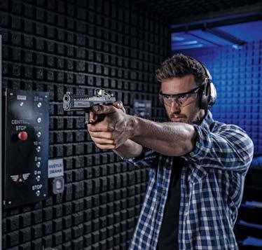 sollte besser zu den einreihigen Modellen greifen, auch wenn die große Magazinkapazität verlockend erscheint, aber in den seltensten Fällen gebraucht wird. Laut Herstellerangaben werden Griffstück und Verschluss aus 4140-Stählen (42CrMo4) gefertigt, was ein häu g verwendeter Werkstoff im Waffenbau ist. Angesichts des niedrigen Preises muss man auf eine hochwertige Beschichtung verzichten. So schützt eine einfache Phosphatierung die Ober äche vor Rost – nicht edel, aber funktional. Auch wenn die Au age äche der Drehhebelsicherung durchaus etwas größer ausfallen könnte, ist das elementar wichtige Bedienelement zumindest auf beiden Seiten zu nden. Beide Modelle verfügen über eine vollverstellbare Kimme im keilförmigen Novak-Style, die mit weißen Punkten versehen ist. Korrespondierend dazu verrichtet ein Lichtfängerkorn seinen Dienst. Den Abschluss des Griffstückes bildet ein stählerner, komplett umlaufender Magazintrichter am Magazinschachteingang. Das Abzugsgewicht maßen wir mit brauchbaren 1.900 Gramm, die Charakteristik mit kaum merklichem Kriechen ging dabei voll in Ordnung. Etwas unkonventionell für den 2011er-Pistolentyp ist, dass der Lauf im Mündungsbereich wie bei John M. Brownings 1911er-Klassiker in einer Buchse geführt wird. Verarbeitung und Passungen waren überraschend gut für diese Preisklasse, sodass die Testwaffen ein stimmiges Gesamtbild ablieferten.