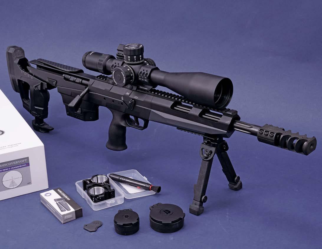 Das imposante Zielfernrohr 5-25x56 FFP von Discovery Optics kostet keine 500 Euro und wir haben es zusammen mit der smarten, elektronischen Nivellierungssanzeige SG Pulse von Shooters Global für rund 175 Euro ausprobiert.