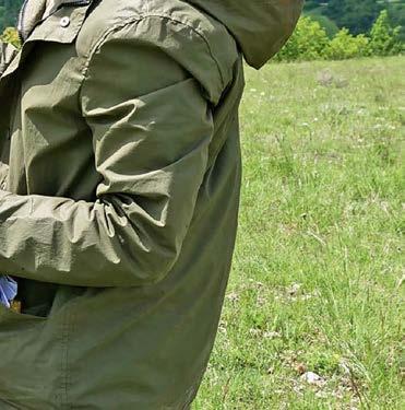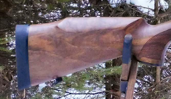 Kunststoff-Schaft mit seiner leicht angerauten Oberfl äche. Der Lauf trägt eine ventilierte Laufschiene mit der gleichen Farbgebung, handwerklich alles sehr schön gemacht. Ein rotes Leuchtkorn auf der Laufschiene bildet die schlichte, aber durchaus kontrastreiche Visierung. Nur die glänzend schwarze Oberfl äche des zehn Patronen fassenden Röhrenmagazins will optisch nicht so recht dazu