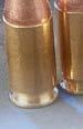 Von l.: 9 x 19 mm FMJ, dann die Üb-Munition: 9 mm CQB, 9 mm Securi Blank, 9 mm FX und 9 mm UTM MMR.