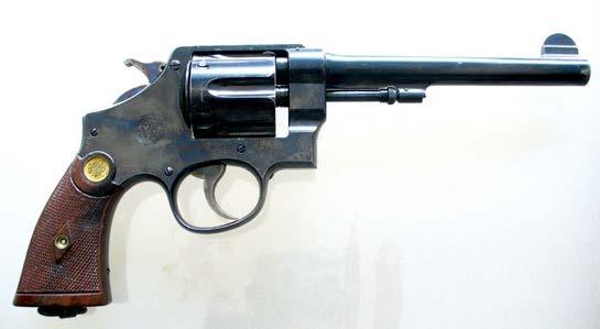 Im Jahr 1898 eingeführt, war dies ein Revolver, der es bis zu seinem im Zweiten Weltkrieg liegenden Fertigungsende auf (jeweils nach Zählweise) über ein Dutzend Varianten, mindestens elf Kaliber und Serien-Laufl ängen zwischen 2 und 7 ½ Zoll brachte. Zum Zeitpunkt des Kaufvertrags zwischen Briten und Amerikanern stand er bereits bei der kanadischen Polizei in mehreren Provinzen in Dienst; zuvor war er bereits im Burenkrieg (18991902) bei kanadischen Truppen im Einsatz gewesen. Die Briten kauften die relativ schwere Waffe mit 5,5-Zoll-Lauf; sie kam mit links ausschwenkbarer Trommel, die sich im Uhrzeigersinn drehte. Die Seriennummern befanden sich am Lauf und am Schwenkarm, sie waren aber nur bei ausgeschwenkter Trommel sichtbar. Die Griffschalen bestanden aus Hartgummi mit beidseitigem „COLT “-Schriftzug oben. Dieser Revolvertyp wurde 1915 offiziell als „Pistol, Colt, .455 inch w/ 5.5 inch barrel Mark I (L)“ in Großbritannien eingeführt und in die „List of Changes“ (LOC) aufgenommen, also in das offizielle Register über alle Handwaffen nebst Zubehör in den Streitkräften. Die LOC umfasste auch Veränderungen respektive Modifizierungen. Der Buchstabe „L“ in der Typenbezeichnung des Revolvers steht für „Land Service“ (= Heer). Der Revolver wurde nach dem Krieg ausgemustert,