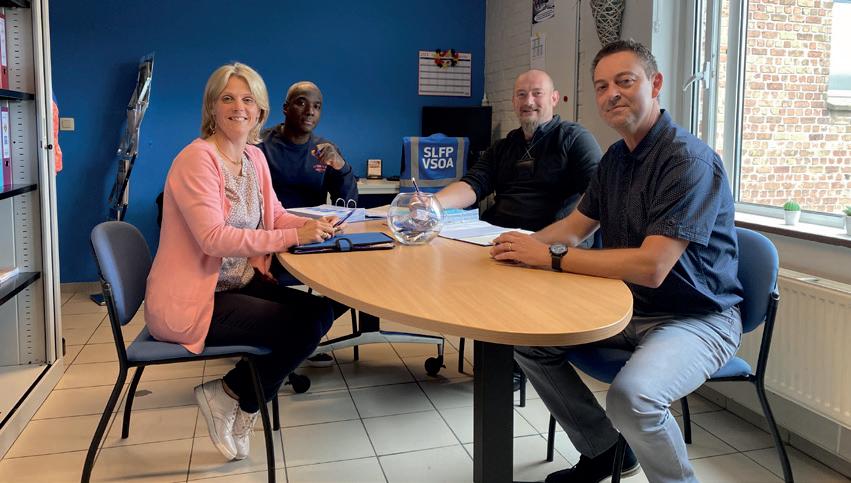 Le quotidien Les délégués passent régulièrement dans les services et dans les unités de soins pour s’enquérir de la situation, des besoins et des problèmes rencontrés par les affiliés, les VLT sont aussi l’occasion de faire le point avec ceux-ci et/ou d’obtenir l’adhésion de nouveaux affiliés. Disposer d’un bureau syndical a permis l’organisation d’une permanence et l’accueil des affiliés selon leur convenance et horaires en toute confidentialité que ce soit par le libre de service ou par leur délégué de référence. Le SLFP au CRP comme dans les autres entités, administrations et institutions veille donc à apporter un service adapté et « sur mesure » en plus des missions et des attributions syndicales. Les problématiques spécifiques sont quant à elles ramenées au sein des instances de concertation, CCB et CPPT étant distincts au CRP, ce qui réclame un investissement et une grande disponibilité des délégués. La délégation accorde également une attention particulière à ses techniciens (experts) qui viennent argumenter les points spécifiques au sein des instances. Sandy Vigoureux, détachée permanente et aide-soignante pendant 20 ans, est également pour nos affiliés, un relais essentiel vers le Service Social des Services du Gouvernement Wallon (SSRW) en les aiguillant et en les accompagnant si besoin dans leurs démarches.