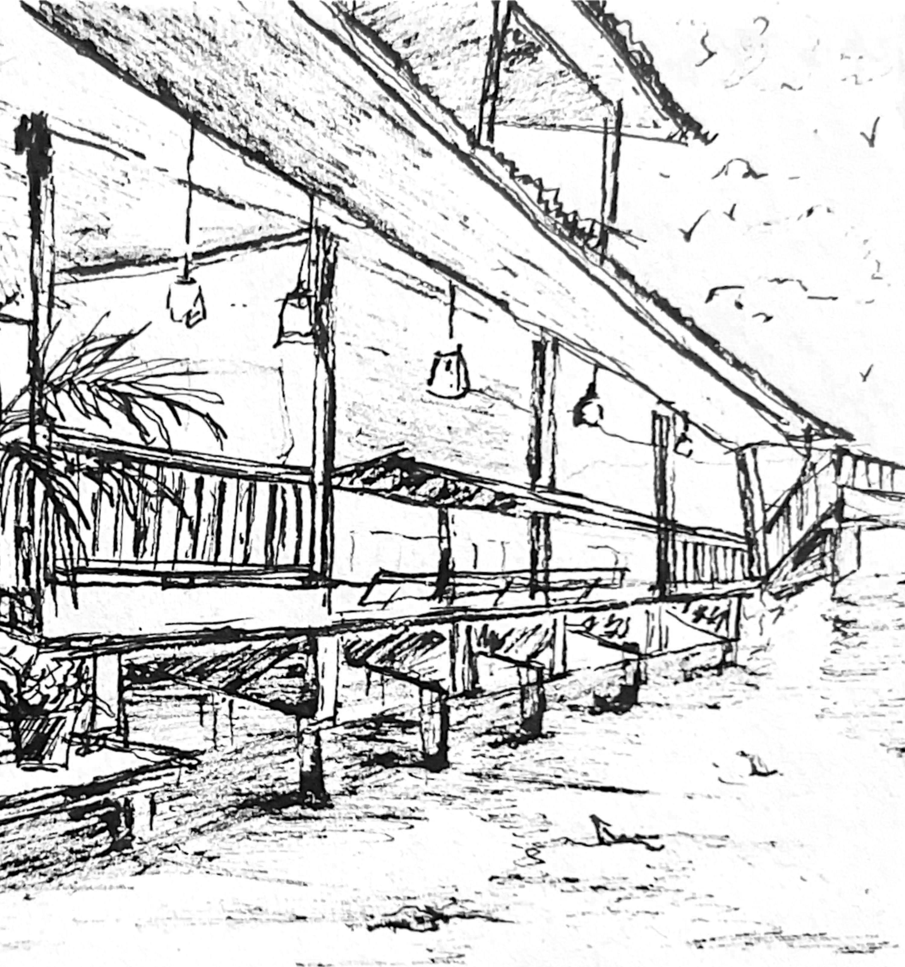 This is travel sketch from a boat tour taken in Bangkok, Thailand. Of what is the literal embodiment of the term “concrete jungle,” Bangkok’s rural side is a beauty on its own, with homes built of local materials and overgrown with native species.