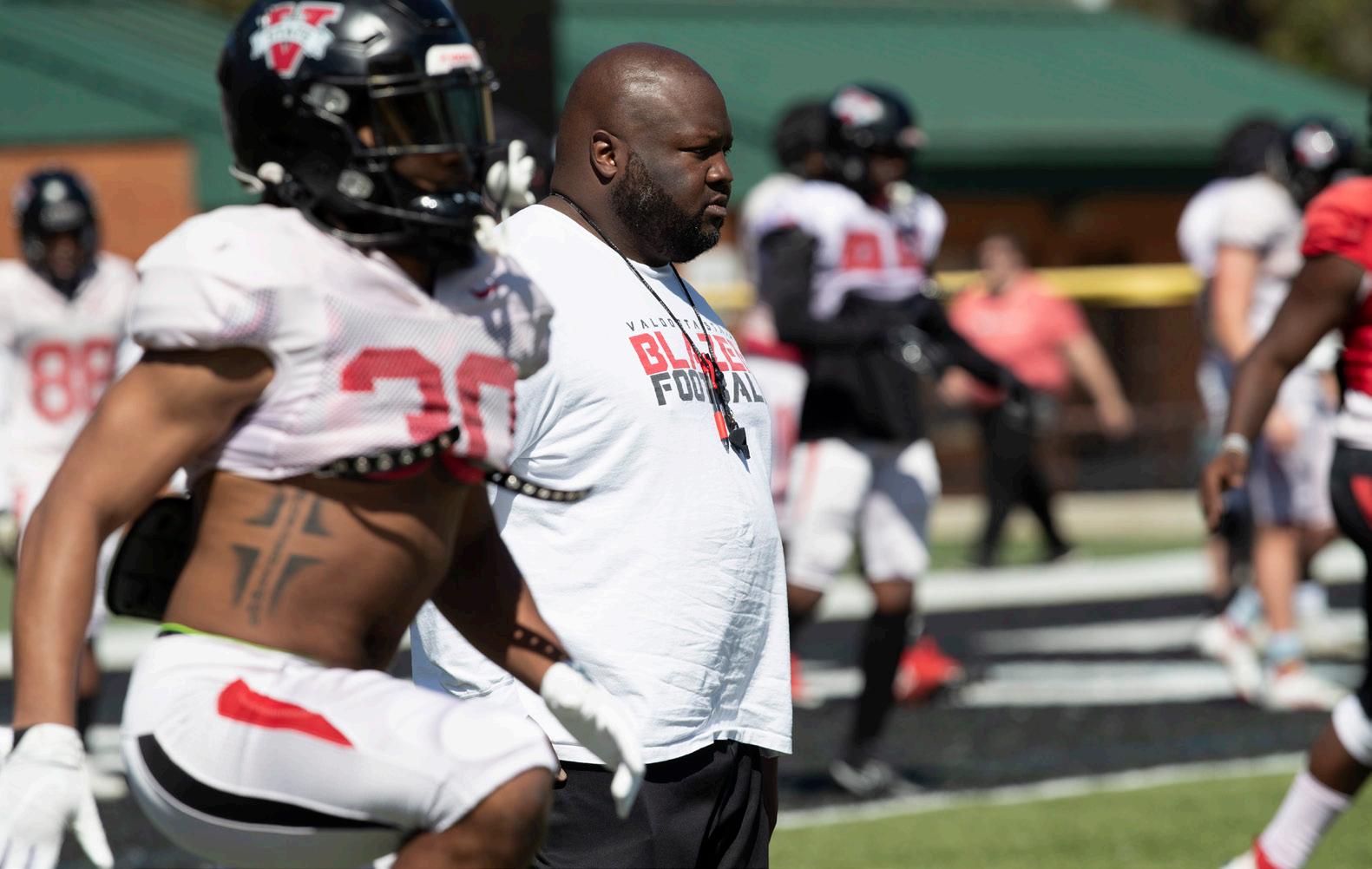 In year two at the helm, Jackson led Valdosta State to the Gulf South Conference championship, becoming the first black coach in conference history to win the title, and was the only non-HBCU black coach to win a conference championship in 2023. The Blazers closed out the regular season with a 10-1 record, Jackson’s first 10win season as a head coach, which was capped off with a 58-28 victory over West Georgia in the final installment of the Peach Basket.