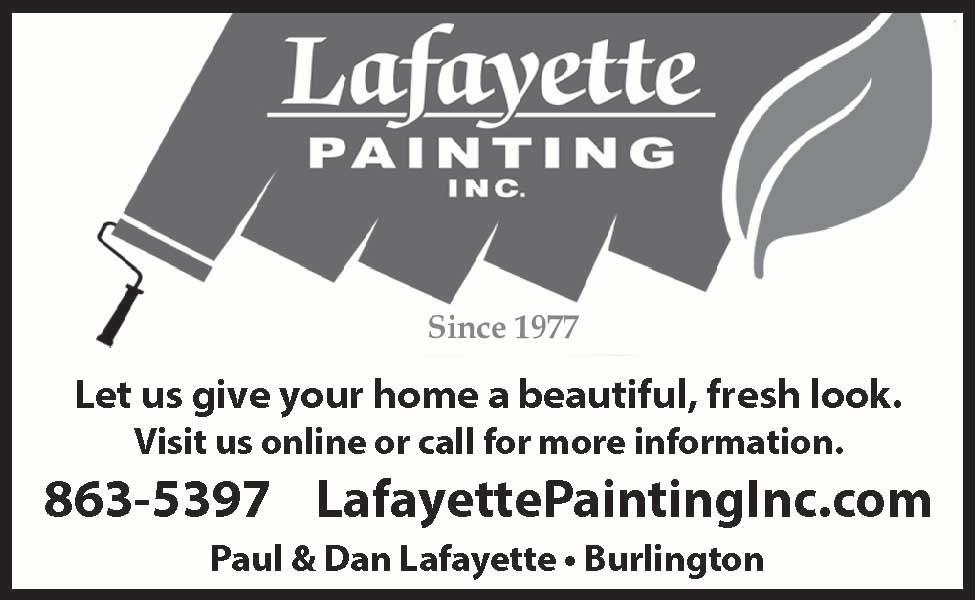 Page 14 • October 27, 2022 • The Citizen Landscape / Lawncare Metal Full Line Steel Service Center 802-864-0326 800-540-4692 35 Intervale Rd, Burlington www.qcsteel.com Delivery available Serving all your metal needs for over two generations Huge inventory of steel, aluminum and stainless in many shapes and sizes from sheets to tubing to angle iron Cutting, Punching, Drilling and Bending Services We’ll even recycle your ferrous and non-ferrous metal Painting Painting • Interior/Exterior Painting • For your free estimate call 802-598-9940 Lupine Painting Does your home need a fresh coat of paint or maybe a new color? • Stress-Free Painting for over 25 years VLM VERMONT LAND MAINT ENANCE V (802) 434-4533 • (802) 373-1755 cell vtlandmaintenance@gmail.com PO Box 899 • Richmond, VT www.vtlandmaintenance.com • Debrushing for private & commercial projects • Slope Mowing • Small Land Clearing Projects • Invasive Vegetation • Orchards • Airports •Forestry Mulching • Solar Fields • Farms • Logging Cleanup • Natural Disaster Cleanup Visit our website for more information Vermont Land Maintenance Land Maintenance Recycling Pest Control WE PICK UP JUNK VEHICLES 802-793-1222 Siding/Remodeling Collectibles Construction Real Estate Antiques Construction service directory To advertise in the service directory email: Advertising@thecitizenvt.com or call 985-3091 Contact Brian Bittner • 802-489-5210 • info@bittnerantiques.com www.bittnerantiques.com ANTI QU ES WANTED Decluttering? Downsizing? Settling an Estate? We can help you discover, learn about and sell: WATCHES • JEWELRY • CO INS • SILVER • ARTWO RK We can field questions, review photos and coordinate estate work. Support for Change josephmulligan@centralvermontpestcontrol.com Joe Mulligan Pest Management & Insect Control 802-477-3899 15+ Years of Experience Fully Insured Free Estimates NOW IS THE TIME FOR MOUSE PREVENTION ! B Brian Brown • 802-238-4864 Restoration • Renovation • Drywall Painting • Insured • References 30 years experience C rown’s onstruction