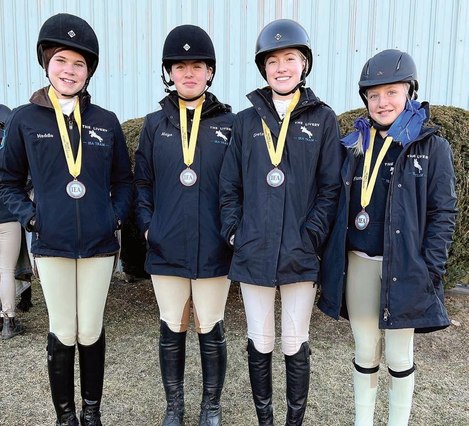 Four members of the Livery Interscholastic Equestrian Association hunt seat team recently attended the regional finals held Feb. 4 in Byfield, Mass.