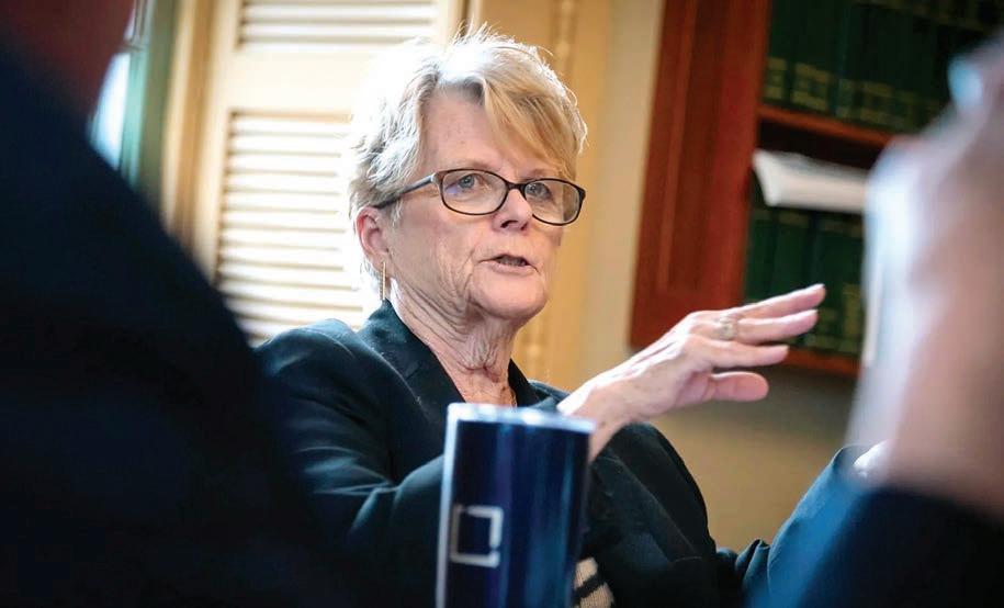 Sen. Ann Cummings, D-Washington, chair of the Senate Finance Committee, speaks as the committee takes testimony on a proposed wealth tax bill at the Statehouse in Montpelier on Jan. 30. See